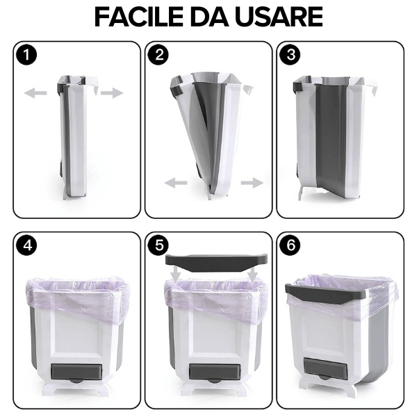 A differenza dei normali cestini per la spazzatura si piega su sè stesso quando non lo usi per essere più funzionale e allo stesso tempo consente di risparmiare spazio in cucina.