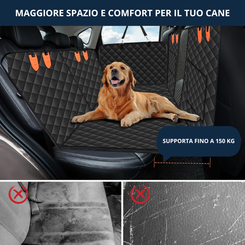 Proteggi la tua auto con stile! Il nostro coprisedile auto per cani è 100% impermeabile, resistente e facile da pulire. Perfetto per viaggi senza preoccupazioni, assicura comfort al tuo cane e sicurezza ai tuoi sedili.